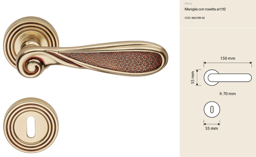 Kaufen Sie den Türgriff Aisha Linea Calì auf Windowo: Wählen Sie Ihr Finish und Ihr Schlüsselloch und holen Sie sich einen Griff mit arabischem Charme und authentischer italienischer Handwerkskunst nach Hause.