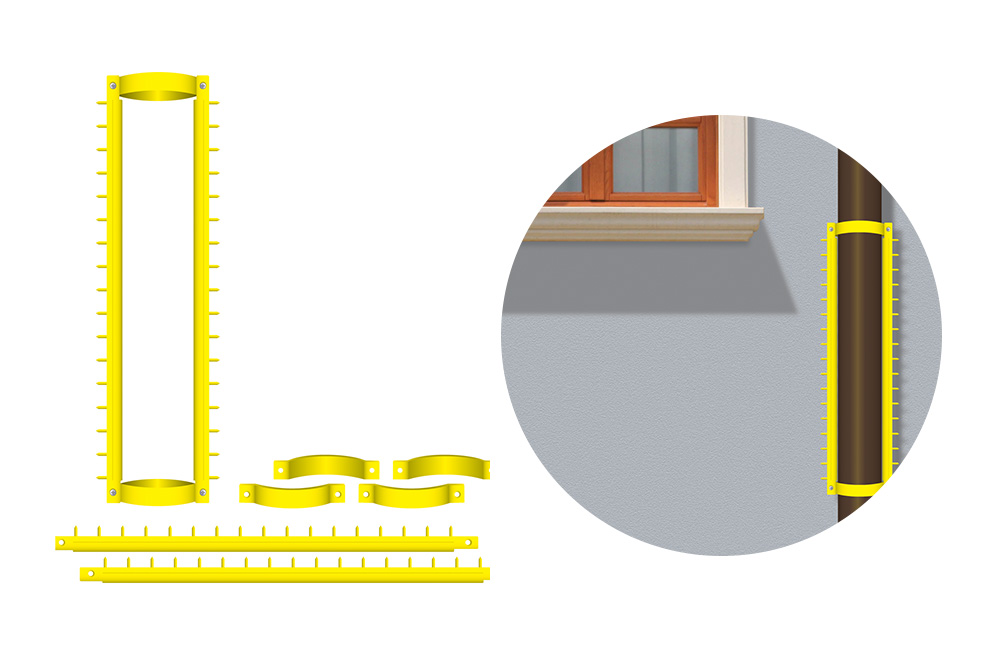 Diebstahlschutzsystem Grimpo K mit Stahlspitzen für Dachrinnen und Fallrohre
