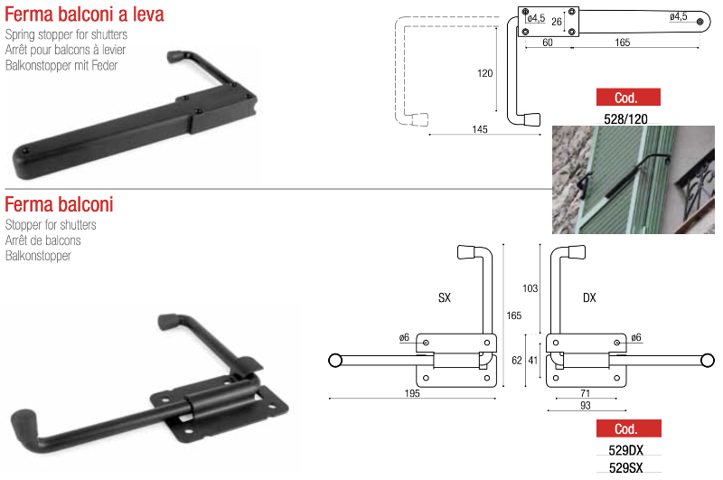 Piemontesischer Federladenstopper mit oder ohne Hebel – Adem 528/120 und 529