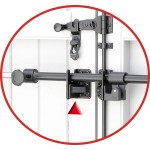 Wenn eine weitere Verstärkung des Mittelteils der Tür oder des Rollladens erforderlich ist, können zwei weitere Haken (separat erhältlich) an den Seiten angebracht werden, wie auf den Fotos gezeigt.