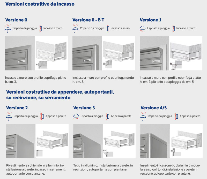 Briefkästen in Stahl, Einbau- oder Hängeversionen