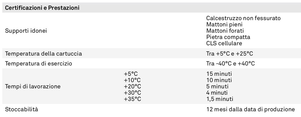 Mit einer manuellen Pumpe bürsten und blasen, bis Schmutz und Bohrstaub vollständig entfernt sind. Injizieren Sie dann das Produkt, nachdem Sie sichergestellt haben, dass die beiden Komponenten perfekt gemischt sind (der Anker nimmt eine homogene Farbe an). Befestigen Sie dann das Scharnier oder den Dübel und warten Sie die angegebene Zeit, bevor Sie das Gewicht laden.