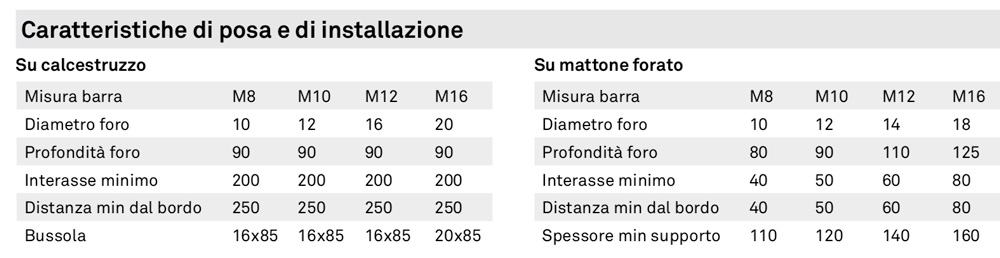 Bohren Sie die Wand (mit einem geeigneten Durchmesser gemäß der folgenden Tabelle) und reinigen Sie das Loch sorgfältig mit geeigneten Metallbürsten.