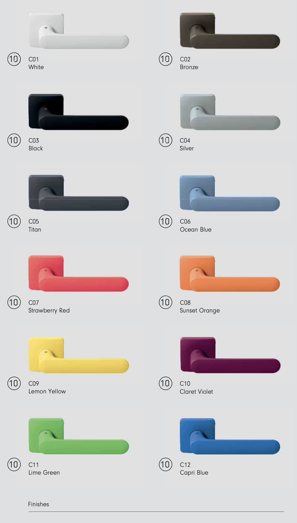 Die Mood-Kollektion von Colombo Design bietet eine große Auswahl an modernen Innentürgriffen und passenden Accessoires in zahlreichen farbenfrohen Ausführungen. Dank dieser vielfältigen Möglichkeiten lässt sich jede Tür individuell gestalten und in ein Einrichtungselement verwandeln, das den Stil Ihres Zuhauses widerspiegelt.