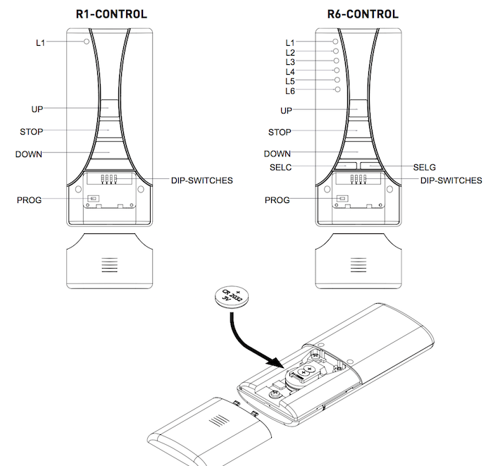R1-CONTROL ermöglichen die Steuerung von 1 Automatismus oder einer Gruppe von Automatismen für Vorhänge und Rollläden.