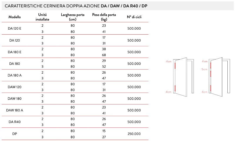 Pendelscharnier Justor DA 120 für die traditionelle Befestigung mit Schrauben und für die Montage durch Schweißen im Rahmen und in der Tür.