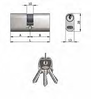 Art.140 / 06 H Omec; Doppelzylinder Messing Nickel Oval (5 Pins)