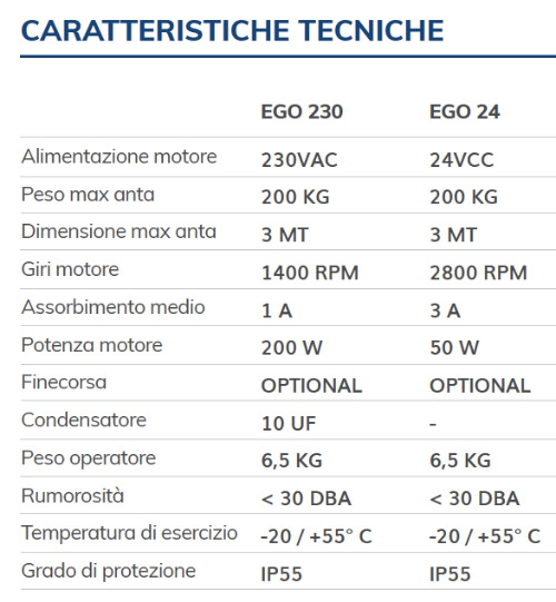 Technische Merkmale der Drehtorautomatik EGO VDS