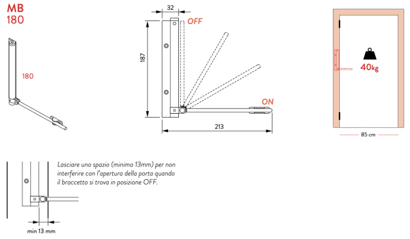 Türbreite 85 cm, Türgewicht 40 kg. Beständigkeit gegen mehr als 250.000 Zyklen.