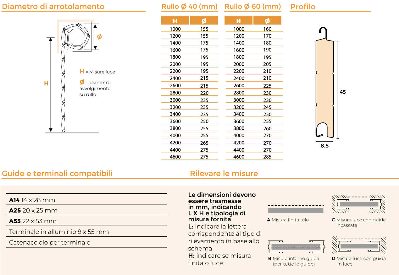 Geben Sie bei der Bestellung das Maß in Millimetern der Basis und der Höhe an (Angabe, ob das Maß des Rollladens fertig oder hohl ist).