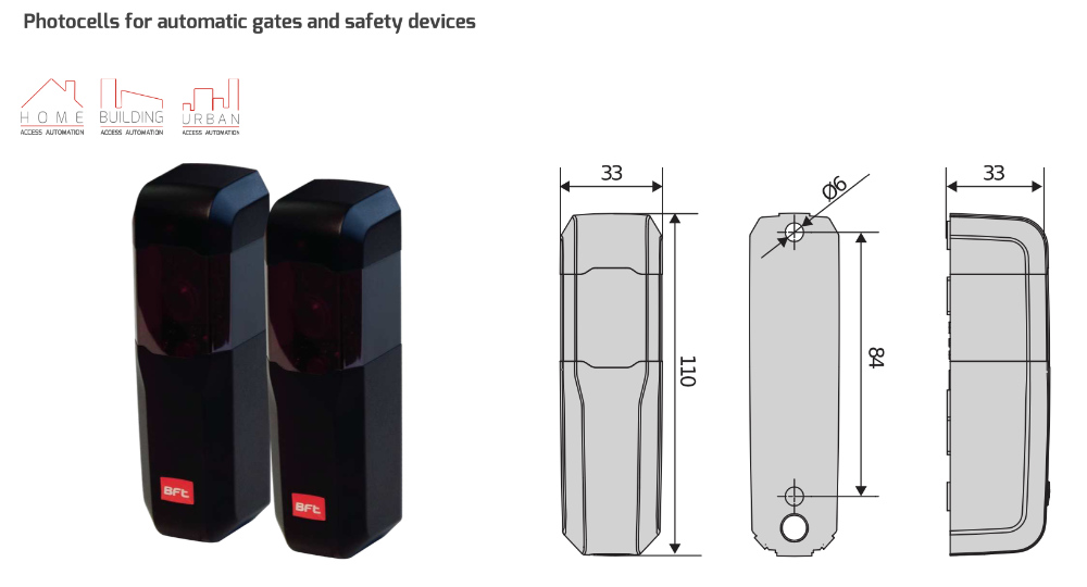 BFT COMPACTA A20-180 Fotozellenmerkmale