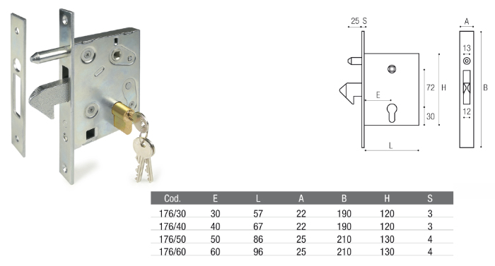 Hankenschloss für Schiebetore - Eingang 30 40 50 60 mm