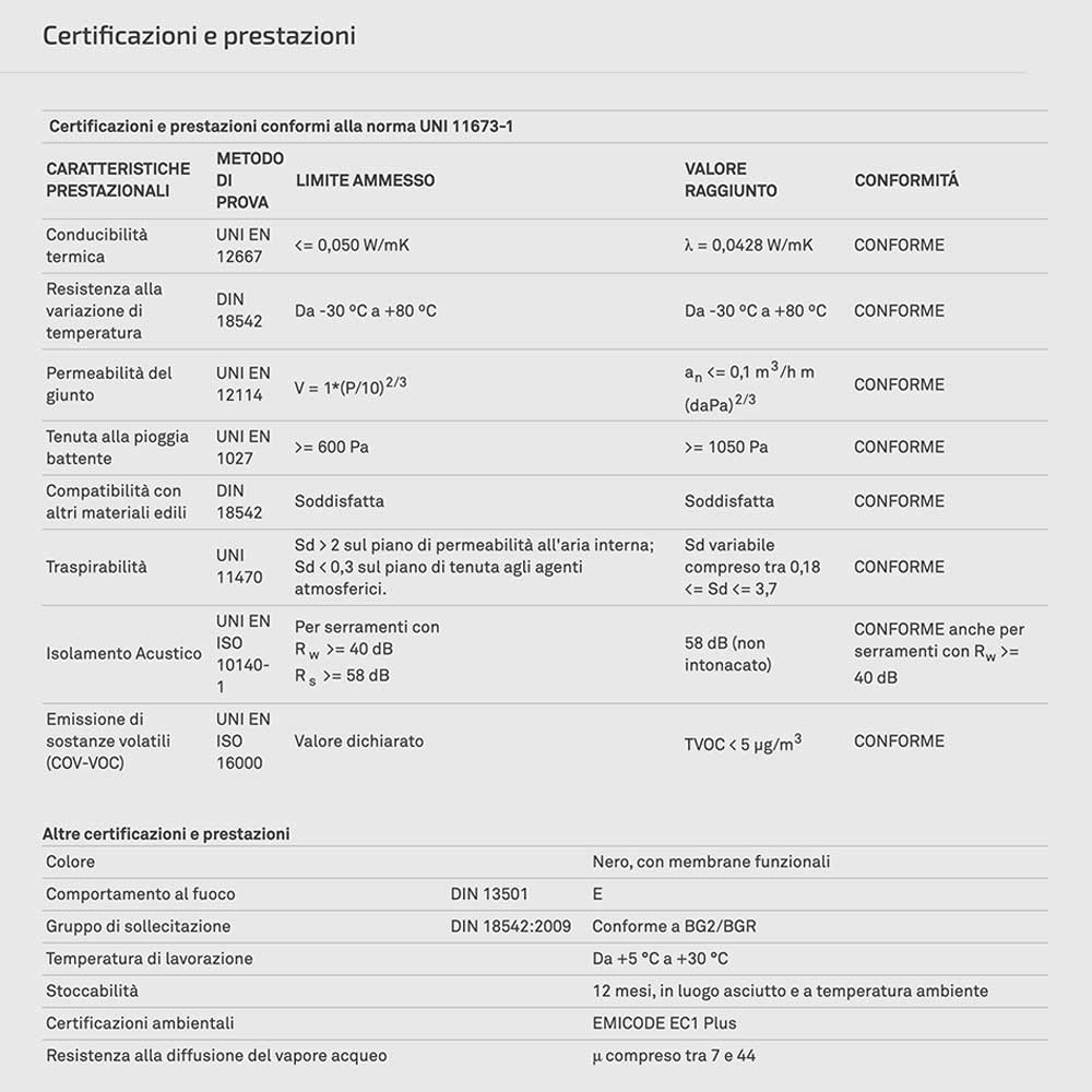 Dieses Klebeband kann die Verbindung beim Einlegen in die Öffnung vollständig abdichten und ersetzt so alle herkömmlichen Materialien (Silikon, Polyurethanschaum und untere Verbindungsstange). Für eine größere Garantie der Abdichtung gegen stehendes Wasser muss jedoch das untere Querstück des Rahmens, das mit der Schwelle oder der Schwelle in Kontakt steht, mit Hanno Vitoseal 100 abgedichtet werden.