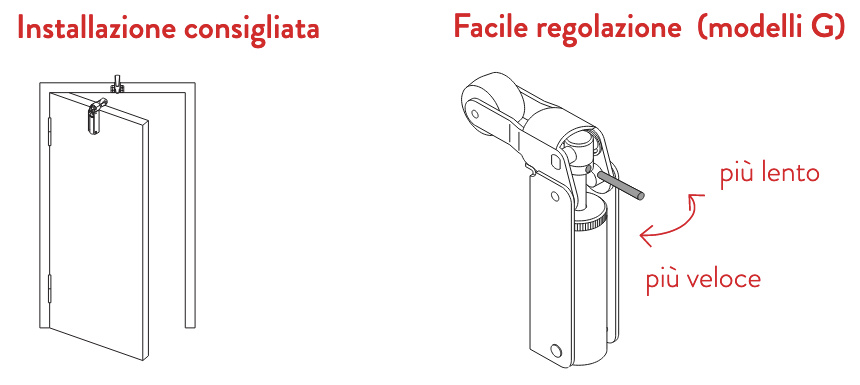 Die Türbremse hat die Möglichkeit, die Schließgeschwindigkeit von 1 bis 10 Sekunden einzustellen (nur bei Modellen mit einstellbarer Schließung).