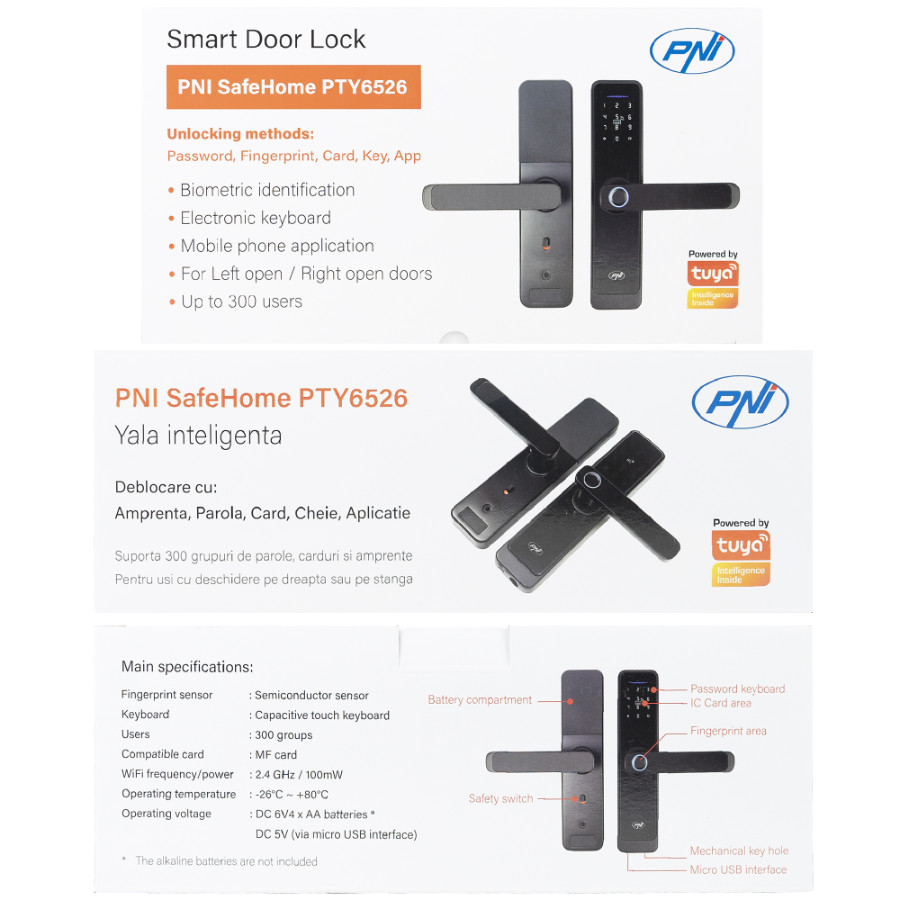 Technische Daten des PNI SafeHome PTY6526 Smart Lock