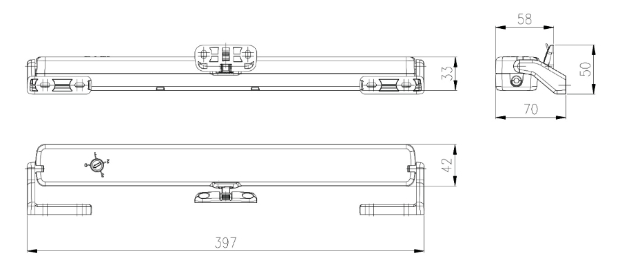 - Abmessungen: 33,5 × 42 × 380 mm.