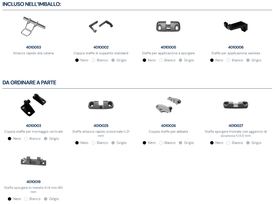 - Paar Halterungen für die vertikale Montage (Code 4010003);