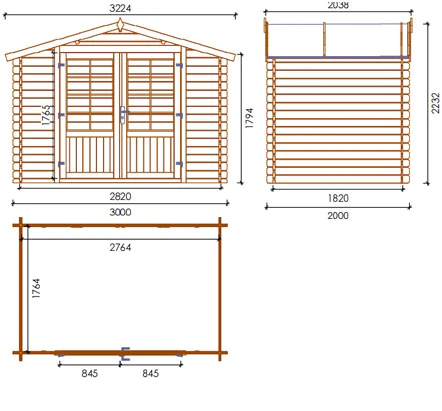Kelly Losa Holzgartenhaus technische Zeichnung.