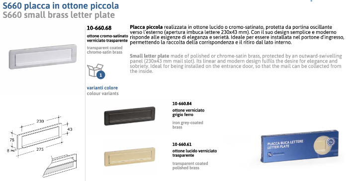 Verkauf von in Italien hergestellten Briefkastenschildern aus Messing