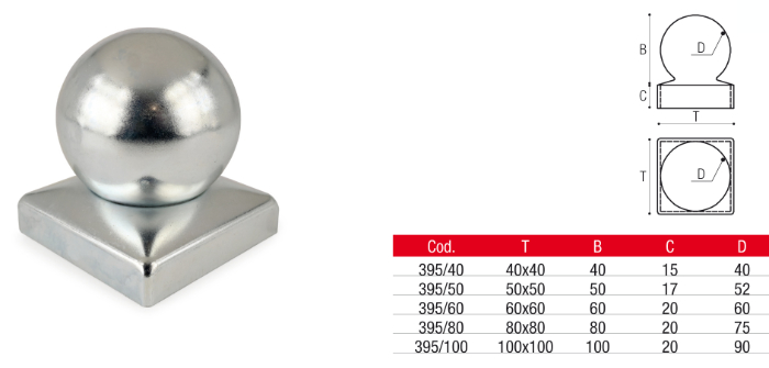Kugelsäulenabdeckung für Vierkantrohr Brevetti Adem - Auswahl an Größen