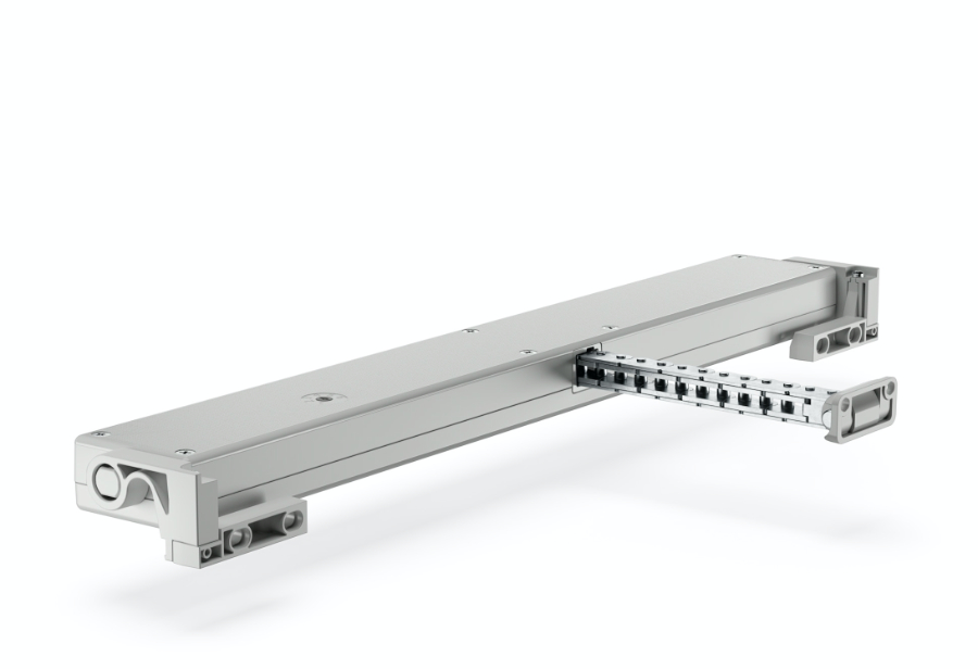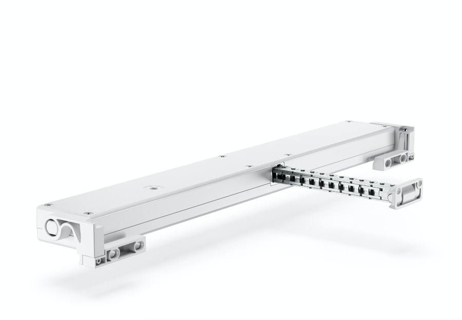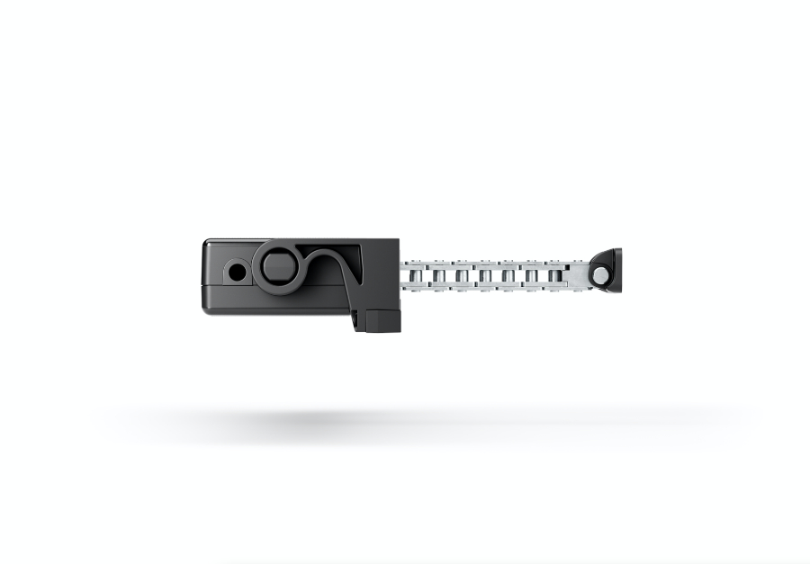 elektromechanischer Kettenantrieb, der dank seiner geringen Dicke von nur 27 mm für die Automatisierung von Fenstern und Türen auch auf engstem Raum entwickelt wurde.