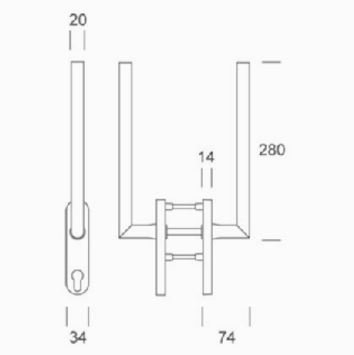 GRIFF Ø 20 MIT DOPPEL DISH FOLDED 180 ° Länge 130 mm, Breite 20 mm.