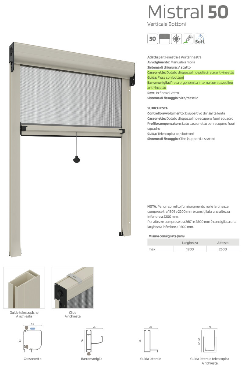 Merkmale des Moskitonetzes mit Kette – Mistral 50 Catenella