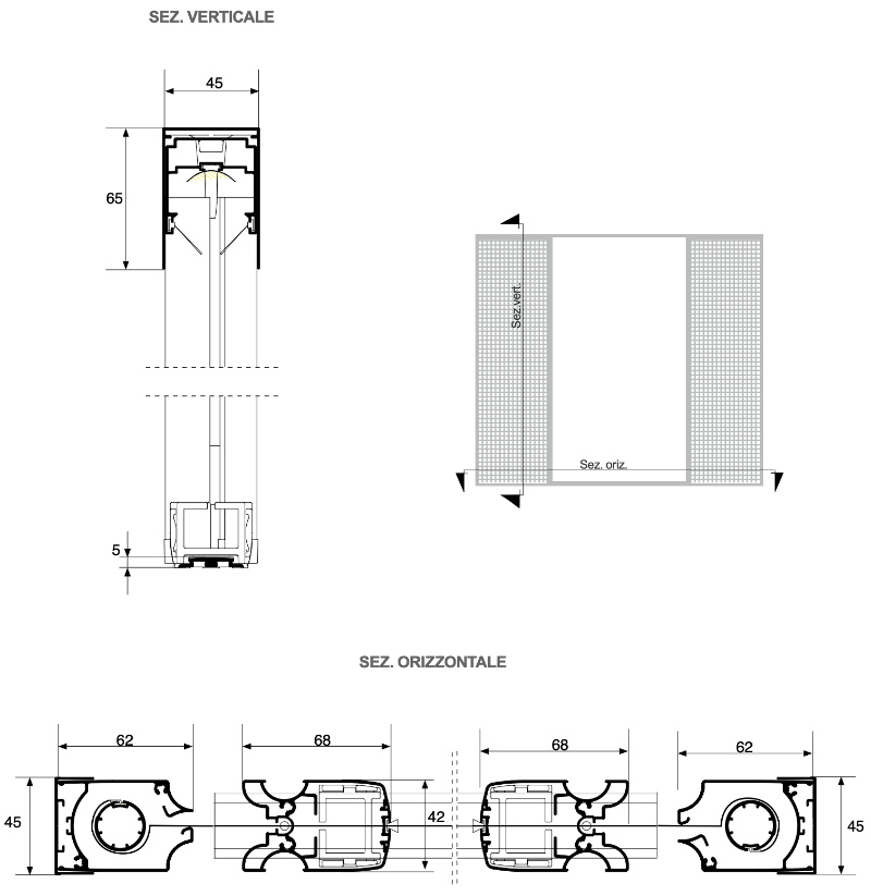 - NEMESI EASY FULL ist immer mit einer 5 mm Bodenführung ausgestattet, die bei Abmessungen über 1500 mm installiert werden muss oder vom Kunden in allen Größen gewählt werden muss.
