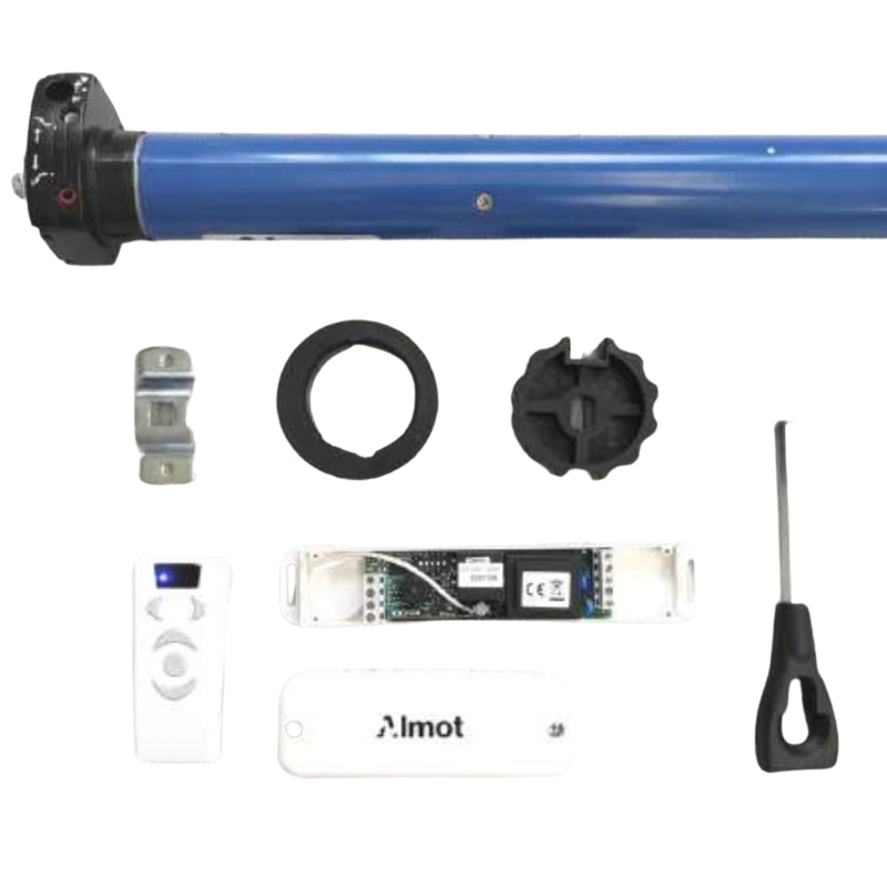 Passen Sie die Motorisierung Ihrer Markise individuell an, indem Sie aus verschiedenen Varianten des ALMOT WIND Kits wählen, die jeweils mit Motor, Steuereinheit, Fernbedienung und Windsensor vorkonfiguriert sind.