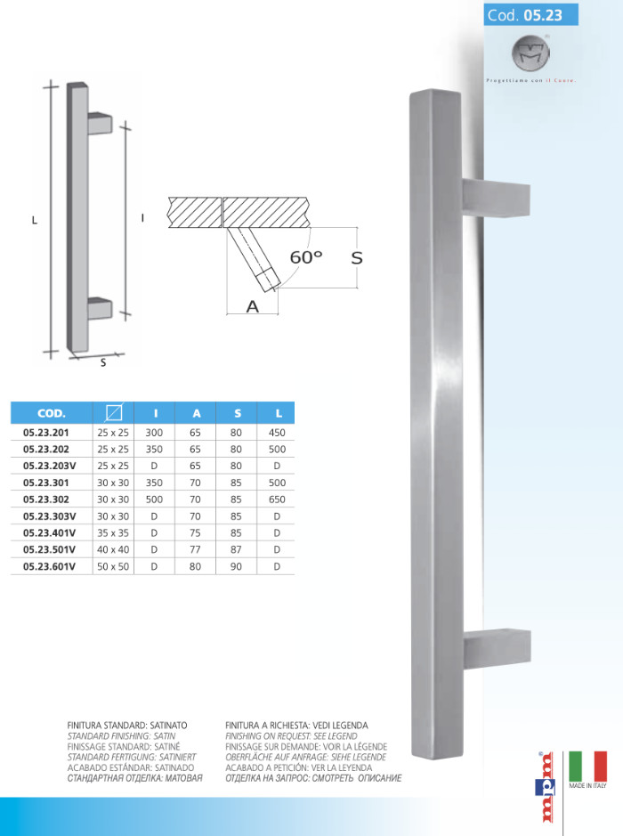 Stahl-Stoßgriff MPM 05.23 - Schräge Vierkantausführung