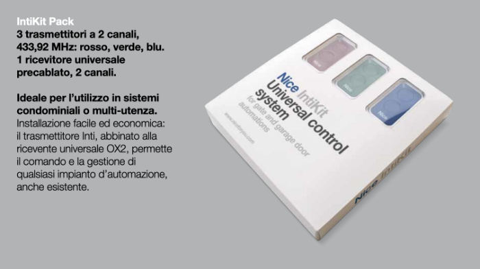 Nice IntiKit - Universelles Funksteuerungssystem - 3 Inti 2-Kanal-Fernbedienungen und OX2-Empfänger