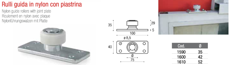 Nylon-Führungsrollen mit Platte : Die Abmessungen und technischen Eigenschaften sind unten angegeben.