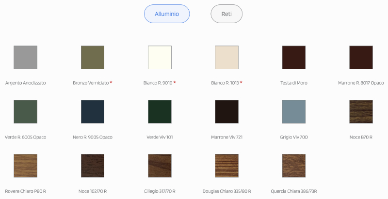 Farbpalette : Der Moskitonetzhersteller Officine Rami bietet eine große Farbpalette (wählen Sie die gewünschte Variante aus). Die dargestellten Farben dienen lediglich als Anhaltspunkt und können in keinem Fall als Referenzfarbtöne für etwaige Farbunterschiede zur Realität angesehen werden.