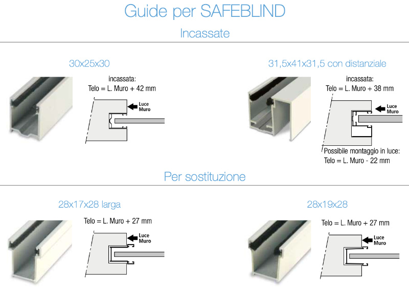 Um die SAFEBLIND-Zertifizierung zu erhalten, muss es immer mit den Anti-Hebe-Sicherheitssystemen, unseren SecurBlocks und den versenkten Führungen installiert werden. Es kann auch auf herkömmlichen Führungen (zum Austausch) mit der entsprechenden Dichtung installiert werden.