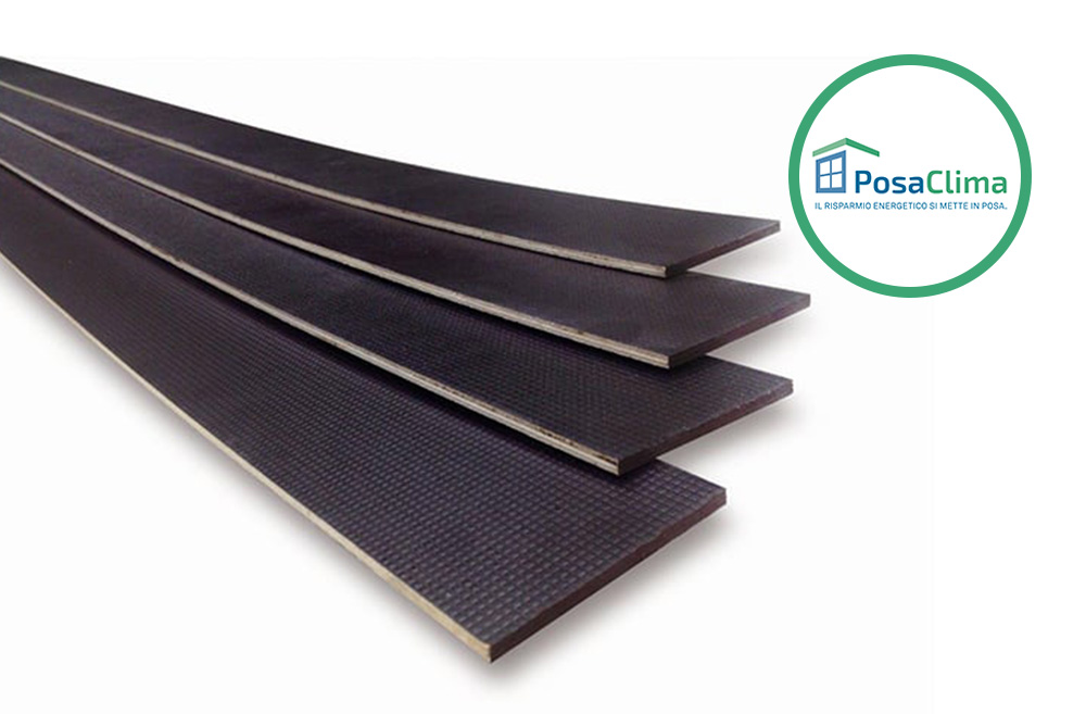 „Profil“ PosaClima ist eine spezielle mehrschichtige Holzplatte, die speziell für die Verbindung mit den Thermoframe-Seiten entwickelt wurde und einen Rabatt des Hilfsrahmens mit reduzierter Dicke erzeugt.