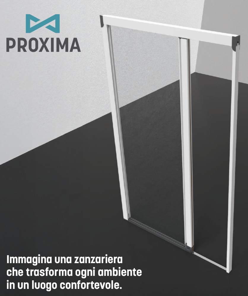 Proxima ist das in Italien hergestellte Moskitonetz, das fortschrittlichen Schutz, innovative technische Lösungen und ein bis ins kleinste Detail durchdachtes Design vereint. Jedes Element ist auf höchste Leistung ausgelegt: vom kontrollierten seitlichen Aufrollen über das einziehbare Schienensystem bis hin zum effektiven Windschutzsystem – für dauerhafte Zuverlässigkeit und Komfort.