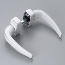 Griff Zweihand mit Feder vormontiert, Metallguss, Kastenprofil 8x120 mm und 4 Schrauben TC Ø 4,2x19 aus verzinktem Stahl.