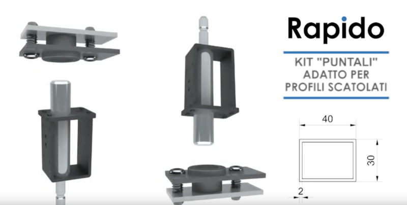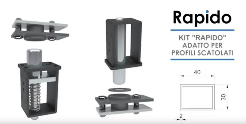 Rapido Nova-Ferr ist ein Kit aus Scharnieren und Zwingen für Sicherheitsgitter , das eine schnelle Montage und Freigabe des Flügels während der Montage und Wartung ermöglicht.