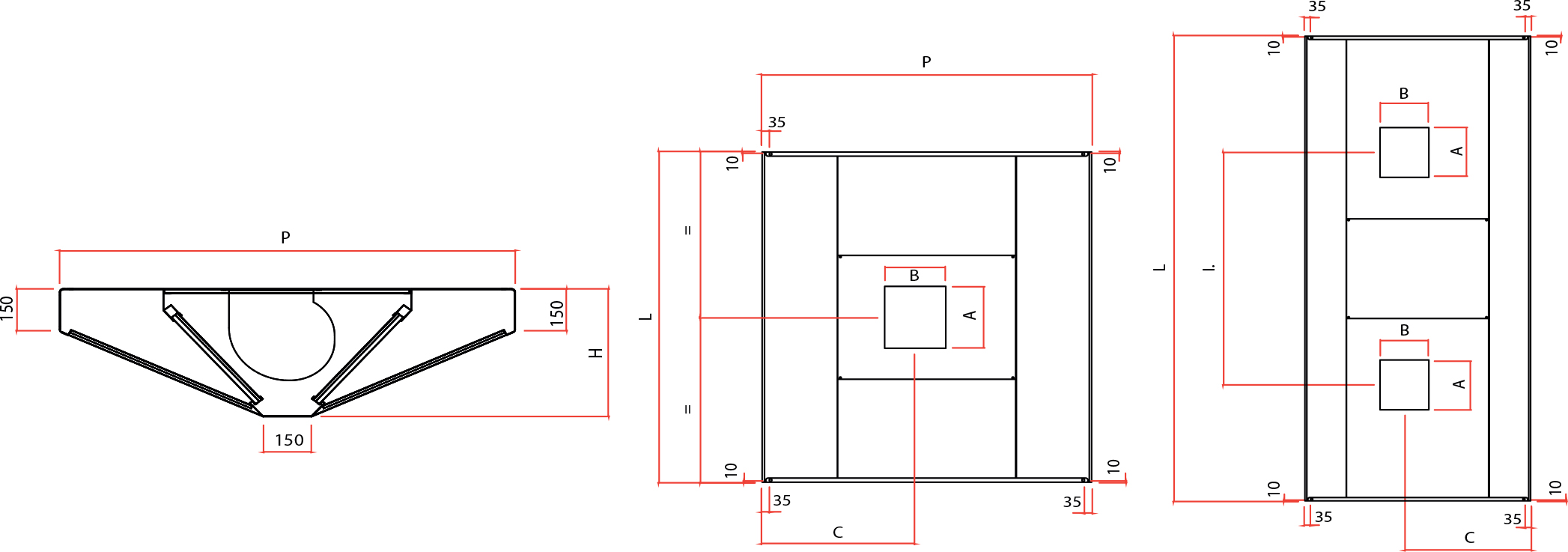 Auf Kundenwunsch werden Sonderausführungen (Ausführung in AISI 304, Montage durch Schweißen), LED-Beleuchtung und größere Abmessungen (kontaktieren Sie uns für einen kostenlosen Kostenvoranschlag) hergestellt.