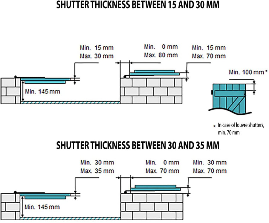 Mindesttiefe zwischen Fenster und geschlossenen Fensterläden: 145 mm.