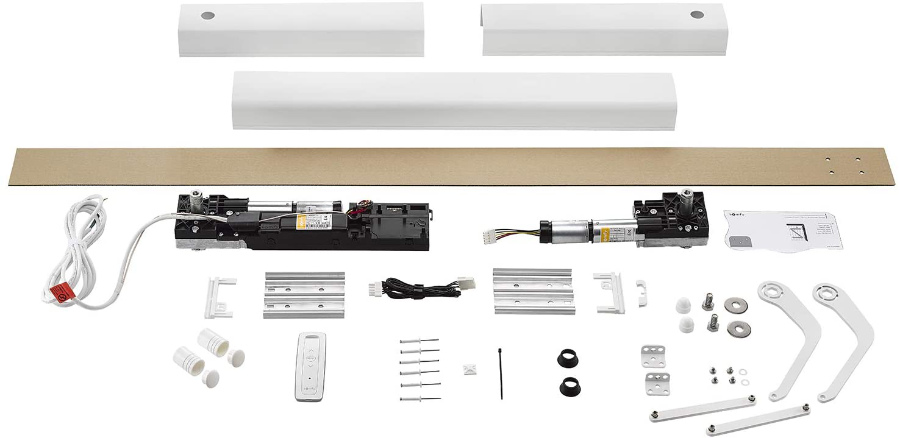 Die kompakten Abmessungen des Rollladenmotors sorgen dafür, dass bei seiner Installation der authentische Charme Ihres Hauses erhalten bleibt. Die mitgelieferten Motorarme und Gehäuse sind weiß, um sich dezent in Ihre Fassade zu integrieren. Das Motorisierungs-Kit Synapsia ist kompatibel mit einflügeligen Fensterläden mit einer Breite von 590 bis 1000 mm oder mit zweiflügeligen Fensterläden mit einer Breite von 880 bis 1520 mm.