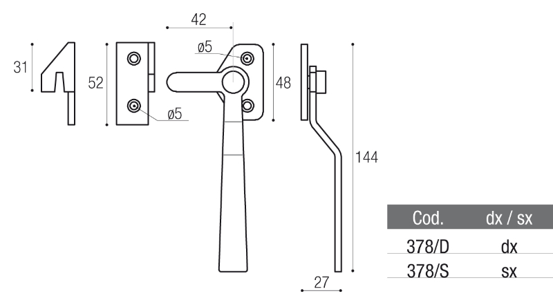 Technische Zeichnung des Fensterverriegelungsgriffs:
