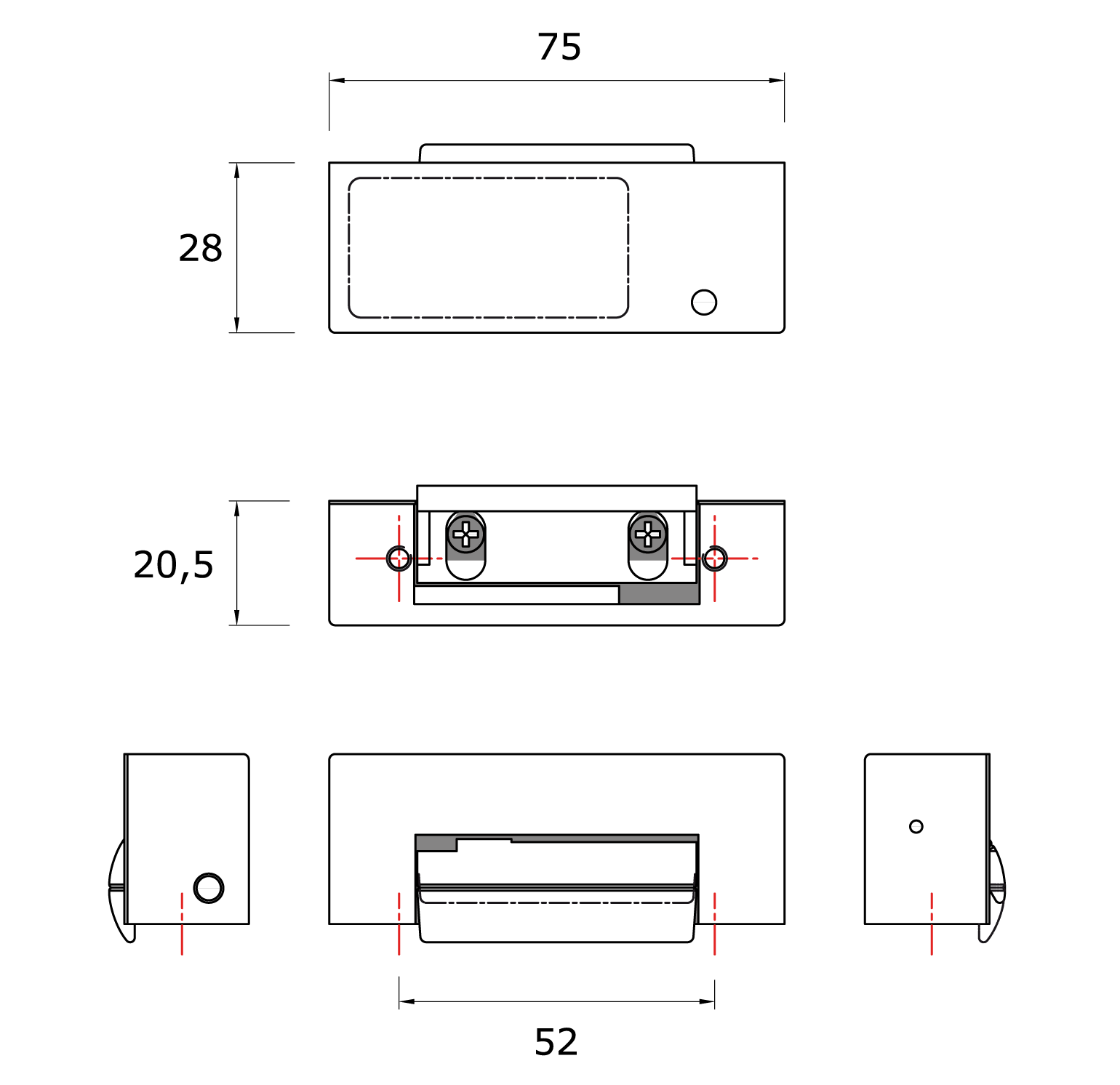 - Abmessungen (L x B x T): 75 x 20,5 x 28 mm;