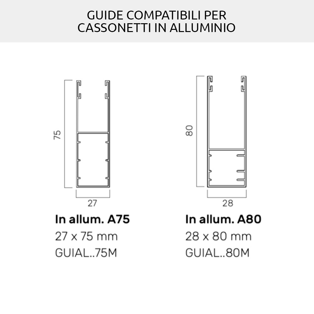 - Austausch oder Neuinstallation von Rollläden und Gleitführungen: Für die Breite der Rollläden sind in Bezug auf die zu verwendenden Führungen die erforderlichen Toleranzen einzuhalten. Sie können die alten Führungen verwenden, wenn sie in gutem Zustand sind und mindestens 16,5 mm Nutzfläche im Inneren haben.