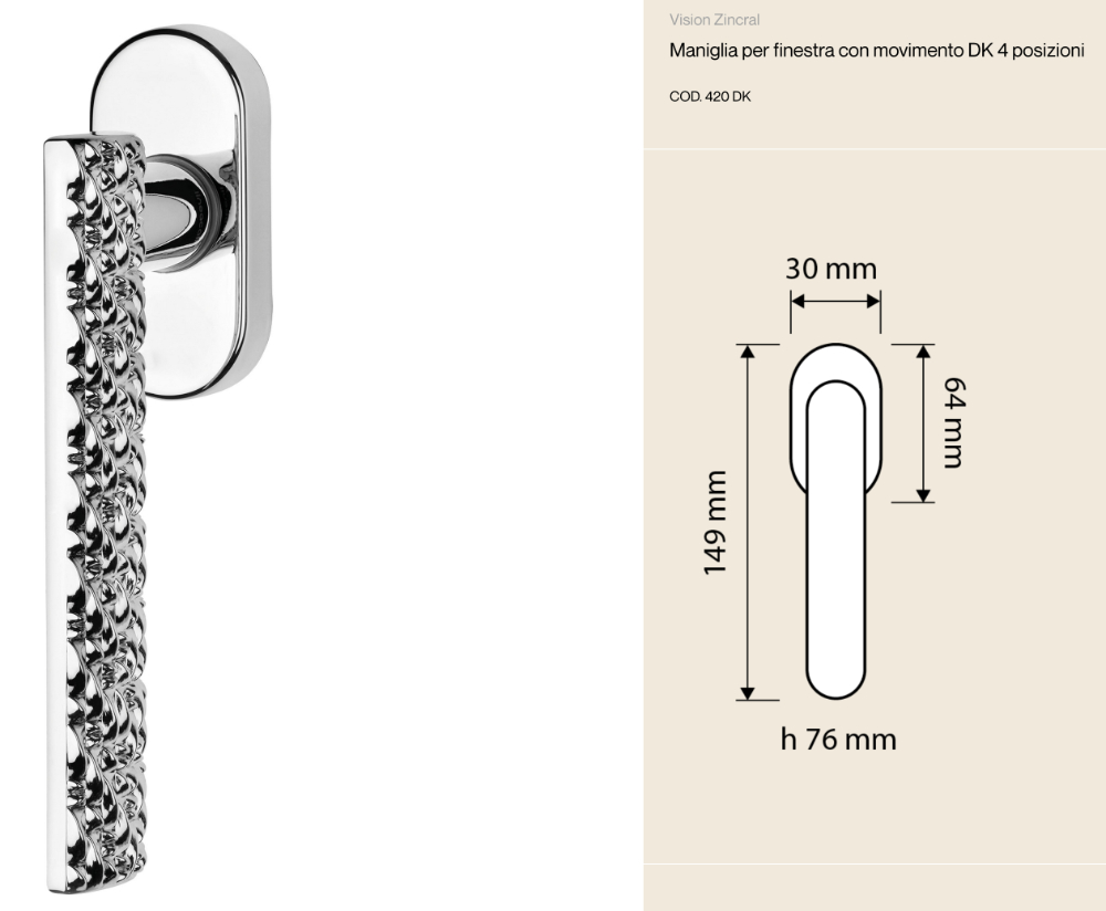Vision Zincral Linea Calì - DK Fenstergriff - Geprägter Griff