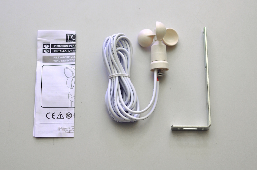 Topp-Windmelder ist ein Gerät, das an die Topp-Steuergeräte angeschlossen ist und das automatische Schließen der Fenster steuert, wenn die Windgeschwindigkeit einen voreingestellten Wert überschreitet.