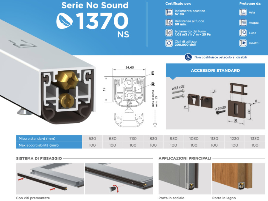 Zugluftstopper der Marke Comaglio, Modell 1370NS NO SOUND – mit fortschrittlicher Schalldämmung, ausgestattet mit einem doppelten Registrierungsmechanismus (DR) für maximale Wirksamkeit.