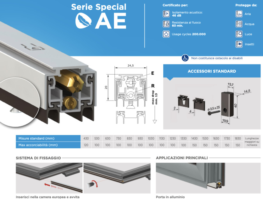 Zugluftstopper AE Comaglio Special Series – Befestigung mit europäischer Kammer – Doppelter Einstellmechanismus